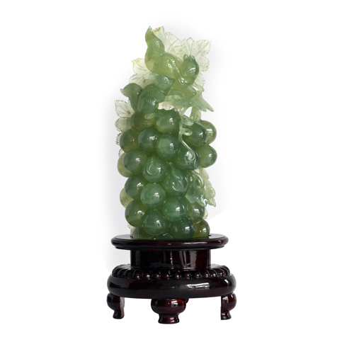 色澤清新自然,顏色品位尊貴,質地細膩潤澤,整體雕刻生動逼真,是極具裝飾效果的一款岫玉擺件。精心打磨的葡萄,圓潤飽滿,上面巧立體摘雕兩只栩栩如生的小松鼠,調皮地嬉戲打鬧著,生動逼真,此情此景,仿若收獲的季節就在眼前,養眼潤心,情景生動傳神。作為禮品饋贈,更是時尚檔次。