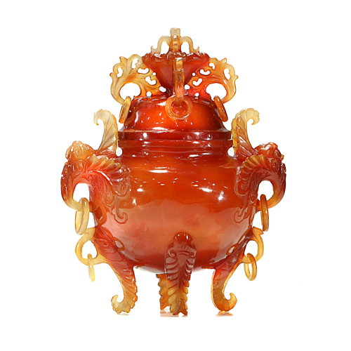 設計端莊、嚴謹、典雅、古樸大方、雕工細膩,突出傳統玉文化的內涵和魅力,具有很高的觀賞和收藏價值。作為千古流傳下來的藝術品之一,香爐與中國源遠流長的玉文化更具有相符相稱的特點。 整體極具深沉雄厚之大氣魄,華貴端莊、瑰麗巧氣,極具古文化的裝飾語言,又富當代氣息。