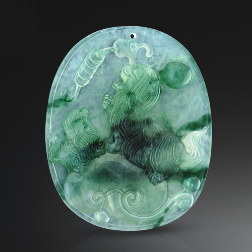 狗狗生動活潑,刻畫入微,綠色摘雕巧妙,寓興旺如意。